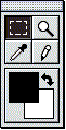 - Displays the current foreground color and background color. Click the arrow to swap the foreground and background colors. "Double-click" to display the color picker and change the color. If the current file uses a palette, click and drag to select the palette.