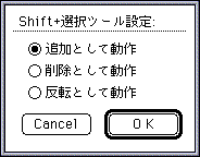 ◆ Operation as an addition The specified range is added to the current selection range. ◆ Operation as deletion The specified range is deleted from the current selection range. ◆ Operates as inversion The current selection is inverted (XOR) according to the specified range. - ● Magnifying glass tool