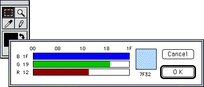 - The color of the clicked point becomes the foreground color (drawing color). The background color is specified by "Option + click".