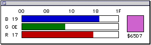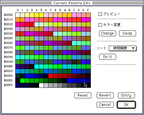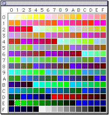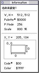 - The palette table in the current window is displayed. The palette code set in the foreground color is displayed in marquee (animated dotted frame).