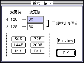 200%: Scales at the specified magnification while maintaining the aspect ratio of the image data before operation. - Init: Returns to the image data before starting the scaling operation.