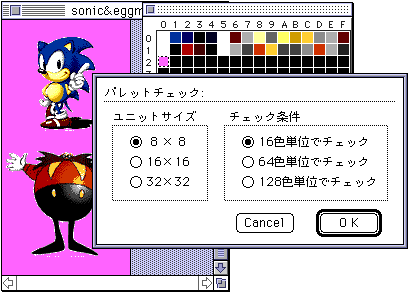 In addition, the image data displayed is the character to be merged filled with the background color. - ● Palette check