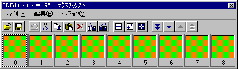 - Open the 2D image file that is the material of the texture, and register it as texture data at the position of the texture number currently selected in the texture window. If the texture data already exists, it will be overwritten.