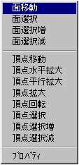 | Parts editing | Selecting this command opens a new window where you can save the preselected parts as independent Pof data. If you want to use the same data more than once, you can save the data by editing this part, then call it and copy and paste it. Note that the viewpoint conversion in this window uses the rotation command for Perspective. |