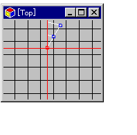 - Of the two polygons lined up, use the "Select" command to select the bottom two vertices. Click the left part of the part marked [Top] in the upper left of the window to switch to the viewpoint viewed from the Right direction.