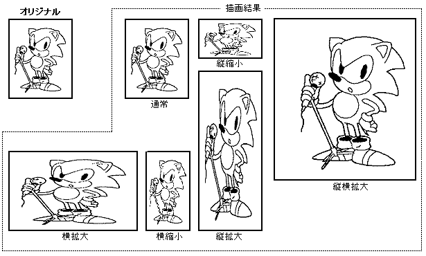 Scale sprite | charactor, | Read direction of 2 vertices, or fixed point, width and read direction | ||