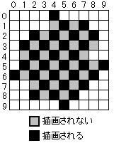 If "X coordinate value + Y coordinate value" is even, it will be drawn, and if it is odd, it will not be drawn and will be skipped. (Fig. 3.9)