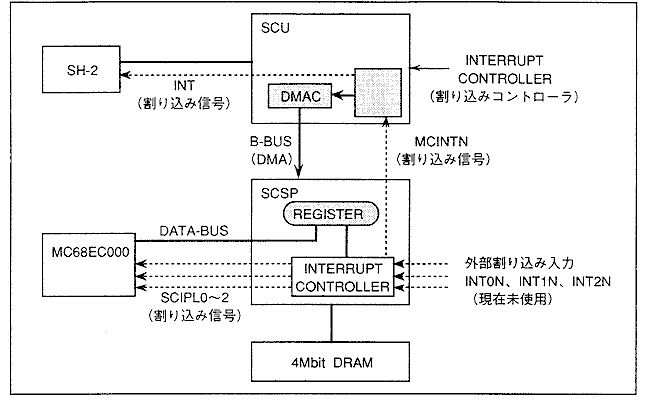 | Four | Supports DMA transfer end interrupt An interrupt is generated when the DMA transfer using the SCSP built-in DMA is completed (when all the data transfer of the block (length (quantity)) set in "DLG" is completed). |