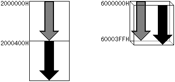 6000000H ┏━━━━━━━━━━┓ ┐ ┃ 20H ┃ │ ← (number of bytes transferred) ┠──────────┨ │ ┃ 5C00000H ┃ │ (a) ← (transfer source address) ┠──────────┨ │ ┃ 4000000H ┃ │ ← (forwarding address) 600,000 CH ┣━━━━━━━━━━┫ ┘ ┃ 10H ┃ │ ┠──────────┨ │ ┃ 6080000H ┃ │ (b) ┠──────────┨ │ ┃ 5E00000H ┃ │ 6000018H ┣━━━━━━━━━━┫ ┘ ┃ 15H ┃ │ ┠──────────┨ │ ┃ 6081000H ┃ │ (c) ┠──────────┨ │ ┃ DA00000H ┃ │ ← 8000000H + 5A00000H 6000024H ┣━━━━━━━━━━┫ ┘ (Exit code) (Forwarding address) ┃ ┃