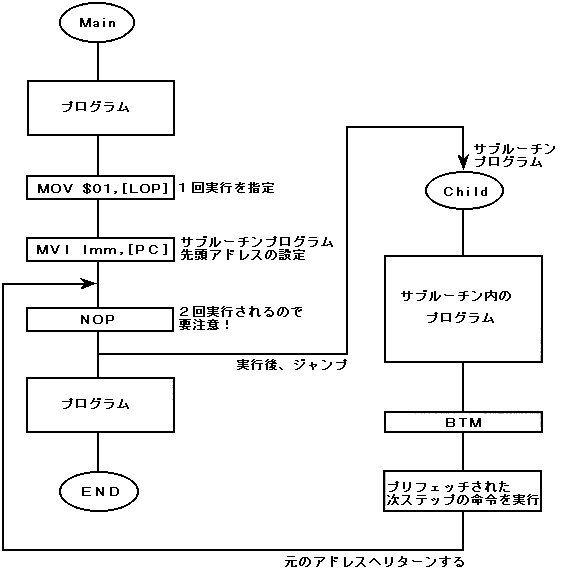 MVI Imm, [RA0]; External memory transfer start address set DMA D0, [PRG], SImm; Transfer word number set, Transfer start MVI Imm, [PC]; Program execution start address set
