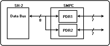 Figure 3.21 shows a block diagram of SH-2 direct mode. The SH-2 can directly access the peripheral through the two I / O port data registers (PDR1, PDR2) in the SMPC.