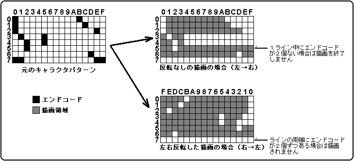 0 | 0 | End code valid, horizontal drawing ends at the second end code, |