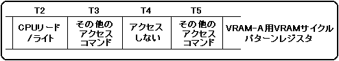 For example, if VRAM-A is not divided into two banks, the VRAM cycle pattern register specification for CPU read / write access to T2 and T4 is shown in Figure 3.6. Figure 3.6 Example of CPU read / write access specification when VRAM is not divided into 2 banks