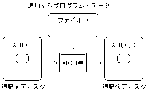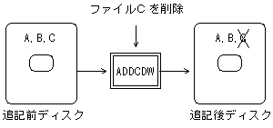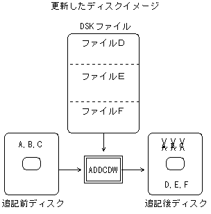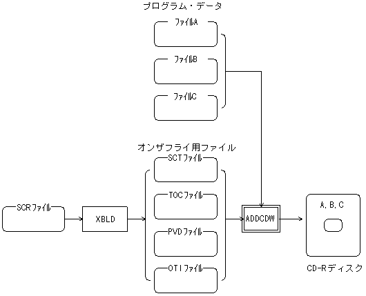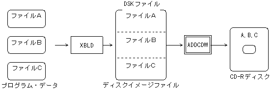 ADDCDW writes to a CD-R disc while creating a sector image of the disc from these files and the source file of the program data. Figure 3.6 On-the-fly writing image