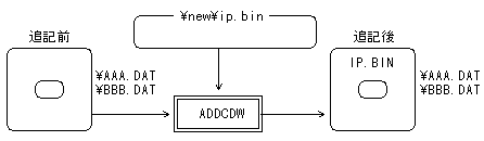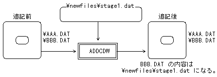 ┌── Subcommand file ──┐ add = prog.bin, prog.bin PROG.BIN is created in the root directory. chdir = music AAA.SND and BBB.SND are created in the add = aaa.snd, aaa.snd \ MUSIC directory. add = bbb.snd, bbb.snd └──────────────┘