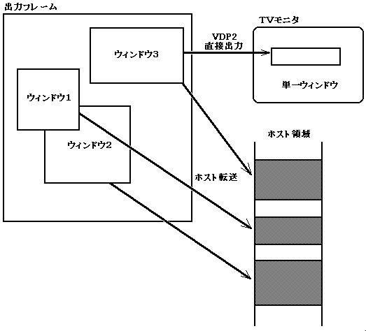 - You can create multiple output windows when transferring to the host area and only one output window when outputting directly to VDP2.