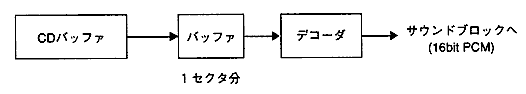 - Playback of MPEG audio is performed by decoding the stream data read from the CD buffer and outputting it to the sound block.