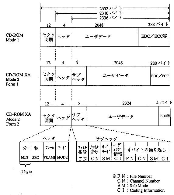 Figure 2.4 CD-ROM and CD-ROM XA sector format