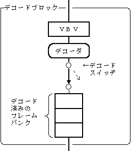 VBV buffer MPEG frame buffer ┌────┬─┬──┐ ┌────┐ ┌─┬──┬───┬───┐ │ │ | │ → │ Decoder │ → │ | │ │ │ │ └────┴─┴──┘└────┘└─┴──┴───┴───┘ Undecoded ↑↑ │ Decoded │ Start next picture