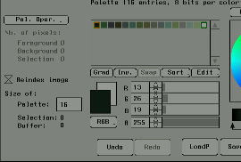 - Select Pal. Oper. → Apply dith. / Apply undith. And create a texture with a reduced number of colors based on the generated palette. (Selectable with or without dithering)
