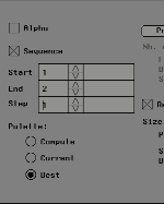 - Select Sequence Active, Start = 1, End = 2, Step = 1, Palette Best option.