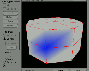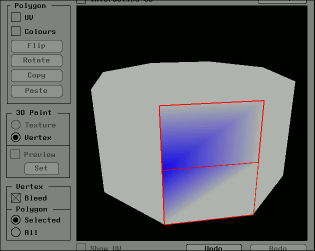 - To copy the Gouraud information of the selected polygon, turn on Polygon → Colors , and then click the Polygon → Copy button. Select the polygon you want to paste using the g key. (To select all but the selected polygons, press Shift + g + right mouse button.)