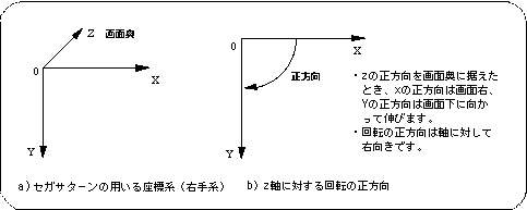 <Fig. 4-1 Coordinate system used by Sega Saturn>