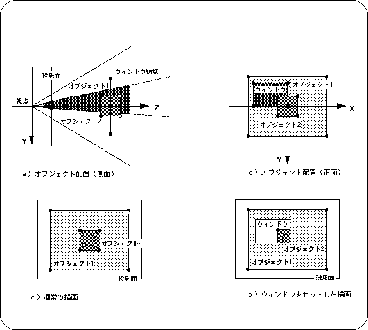 Note 1) Object 1 is displayed outside the window Note 2) Object 2 is displayed inside the window