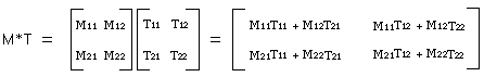 The figure below is an example of multiplication between 2-row x 2-column matrices.