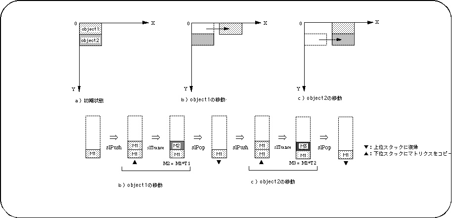 | Bool | slPopMatrix | void | Restoration of temporarily saved matrix |