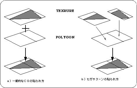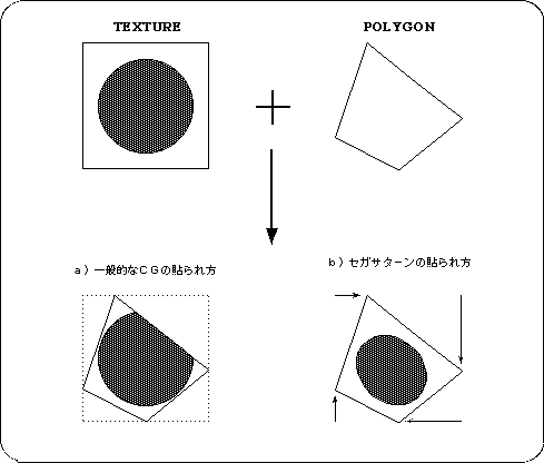 Sega Saturn's texture mapping and so-called texture mapping in general CG have two different properties as shown in Table 7-3.