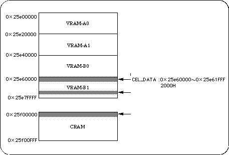 Character data: 2000H from address 0x25e60000 Map data: 1000H from address 0x25e76000 Palette data: 20H from address 0x25f00000