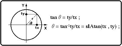 | ANGLE | slAtan | FIXED tx, FIXED ty | Returns the angle in the specified direction |