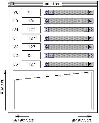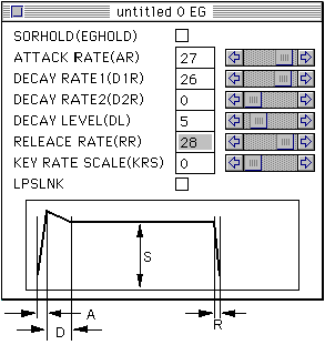 | A : Time from when the sound starts to reach the maximum volume D : Time from maximum volume to sustained volume decay S : Time that lasts while you hold down the keyboard R : Time from when the keyboard is released until the sound disappears |