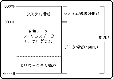 Sound memory has a system area and a data area. The system area is a fixed area for sound driver operation and system management, and the data area is a variable area (variable mapping) for storing sound source data and internal processing of the DSP.