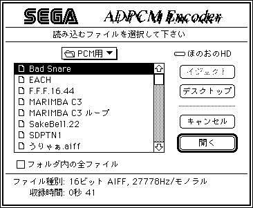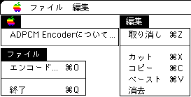- "About ADPCM Encoder" displays information such as the version of ADPCM Encoder.