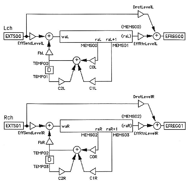 @ TEMP00 * FbL + (EXTS00 * EffSendLevelL +)> MW [waL + DEC]