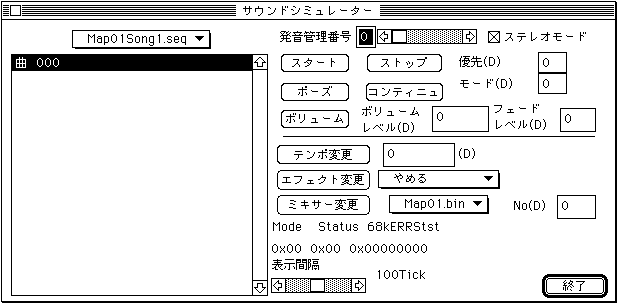 Refer to the 68000 status bits of the sound driver to display the contents.