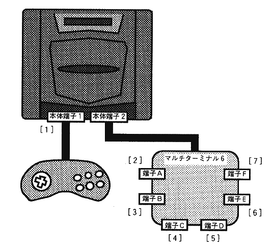 When connecting to a multi-terminal, the number of terminals and the number of players that can be played will increase, so the following principles, which are an extension of the <Principle for setting corresponding input peripherals>, must be observed.